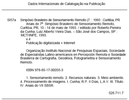 VII Simpósio Brasileiro de Sensoriamento Remoto - SBSR
